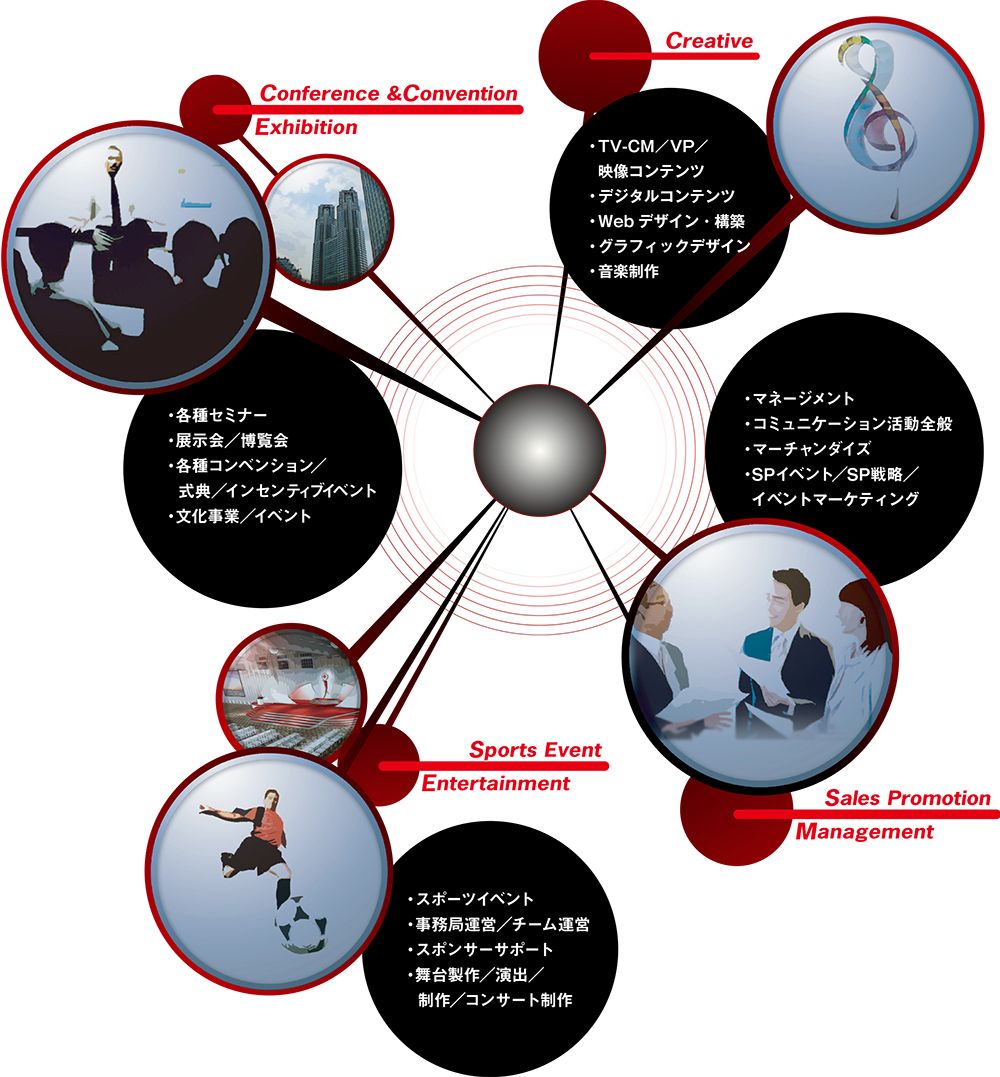 様々なイベントスタイルを有機的に変化融合させ、お客様のニーズに最適なコミュニケーション手法を提案し、